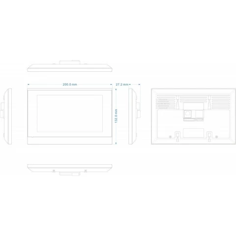 интерком-монитор, диагональ: 7", 800x480, сенсорный экран, RAM: 64 MБ, Flash-память: 128 MБ, Ethernet: 2 x 10/100 Mб/с, DHCP, совместимость с РоЕ (IEEE802.3af), встроенный микрофон и динамик