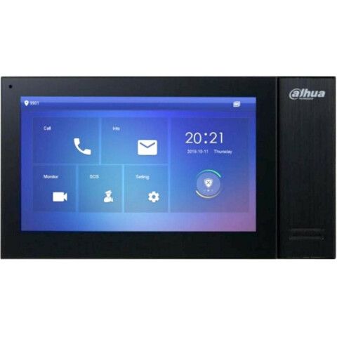IP видеодомофон, сенсорный экран 7" 1024x600, LAN, тревожные входы/выходы: 6/1, питание DC 12В, возможность просмотра IP камер