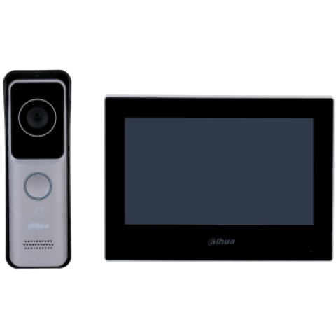 комплект видеодомофон (DHI-VTH2621G-WP) + вызывная панель (DHI-VTO2311R-WP), 7" сенсорный экран 1024x600, Wi-Fi, PoE, защита IP65, камера 2Мп, сжатие H.264, H.265