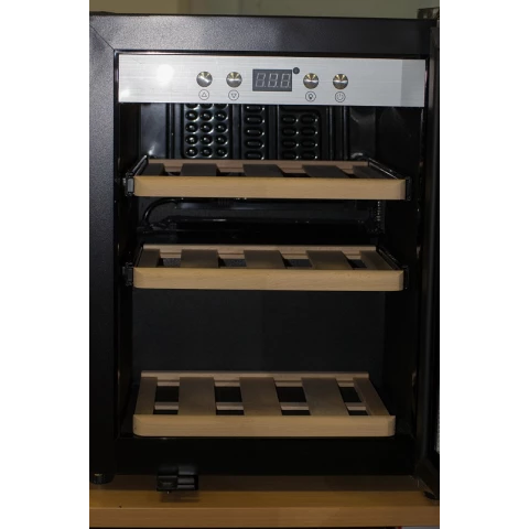 монотемпературный, электронное управление, количество бутылок: 12, количество камер: 1, количество полок: 3