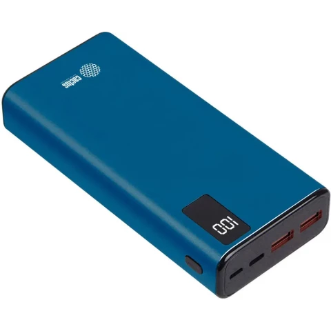 аккумулятор ёмкостью 20000 мАч, выход: 2xUSB, USB Type-C, вход: microUSB, USB Type-C, максимальный ток: 3 А, индикатор заряда