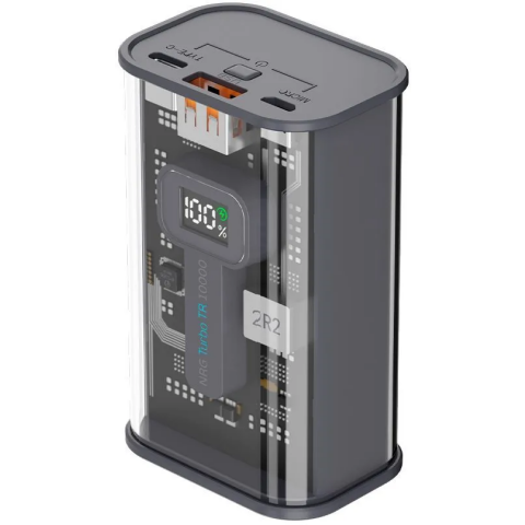 аккумулятор ёмкостью 10000 мАч, выход: USB, вход: microUSB, USB Type-C, максимальный ток: 5 А, быстрая зарядка, индикатор заряда