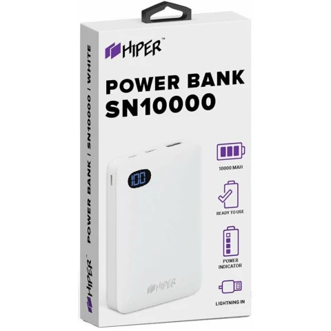 аккумулятор ёмкостью 10000 мАч, выход: USB, вход: microUSB, USB Type-C, Lightning, максимальный ток: 2.4 А, индикатор заряда