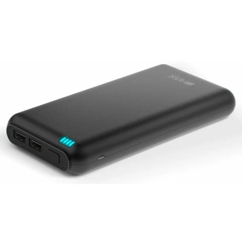 аккумулятор ёмкостью 20000 мАч, выход: 2xUSB, вход: microUSB, максимальный ток: 2.1 А, индикатор заряда