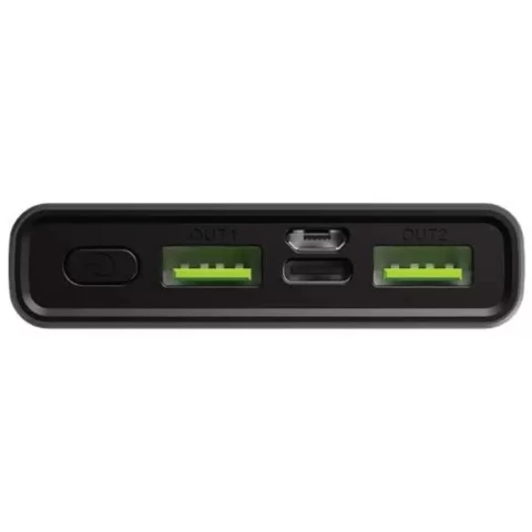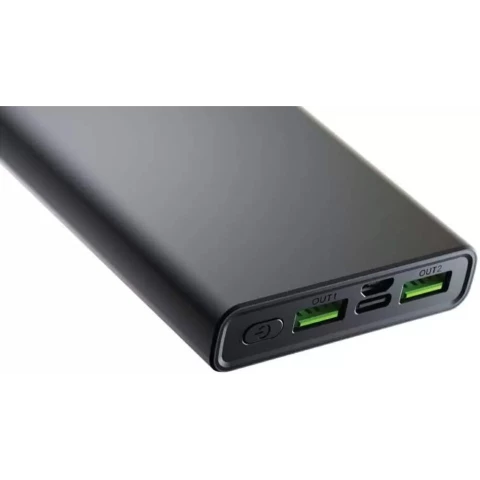 аккумулятор ёмкостью 10000 мАч, выход: 2xUSB, вход: microUSB, USB Type-C, быстрая зарядка, индикатор заряда