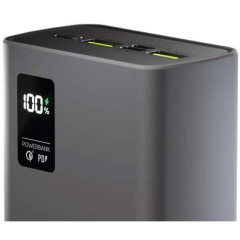 аккумулятор ёмкостью 30000 мАч, выход: 2xUSB, вход: microUSB, USB Type-C, быстрая зарядка, индикатор заряда