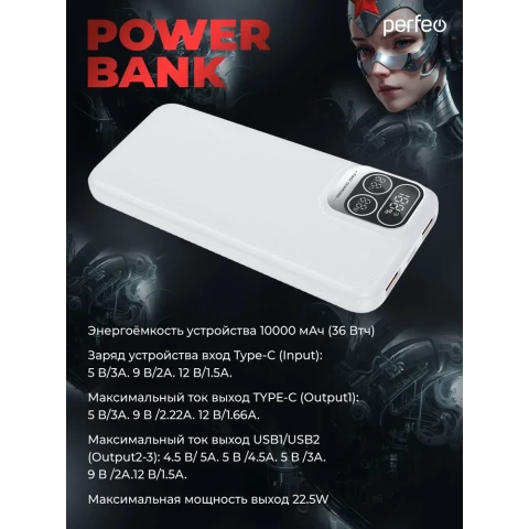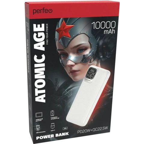 Внешний аккумулятор Perfeo Powerbank Atomic Age 10000mAh White