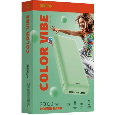 Внешний аккумулятор Perfeo Powerbank COLOR VIBE 20000mAh Mint_1