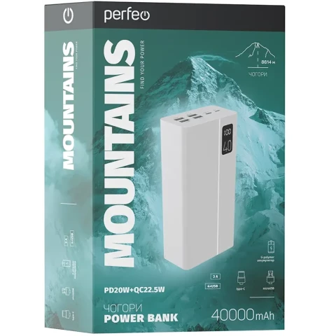Внешний аккумулятор Perfeo Powerbank MOUNTAINS 40000mAh White
