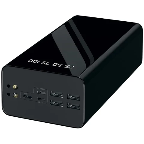 аккумулятор ёмкостью 50000 мАч, выход: 4xUSB, USB Type-C, microUSB, вход: USB Type-C, максимальный ток: 2.1 А, индикатор заряда