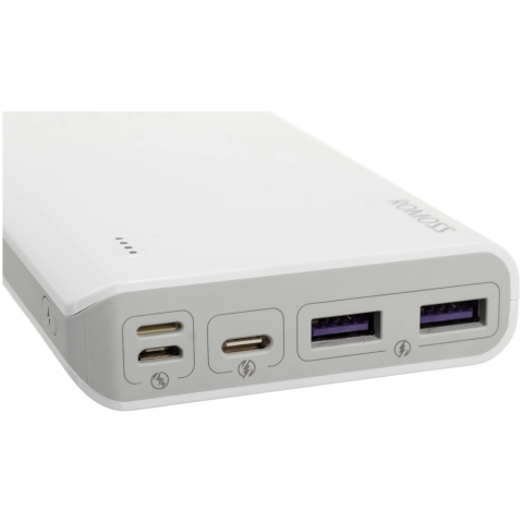 аккумулятор ёмкостью 20000 мАч, выход: 2xUSB, USB Type-C, вход: microUSB, USB Type-C, Lightning, максимальный ток: 3 А, быстрая зарядка, индикатор заряда