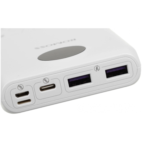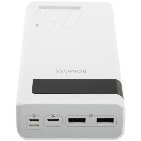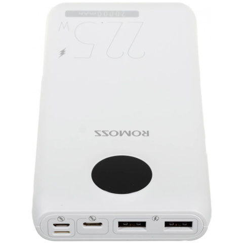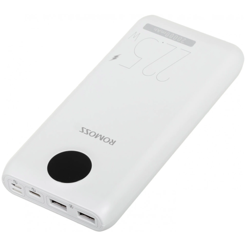 Бренд: Romossаккумулятор ёмкостью 20000 мАч, выход: 2xUSB, USB Type-C, вход: Lightning, microUSB, USB Type-C, максимальный ток: 3 А, быстрая зарядка, индикатор заряда