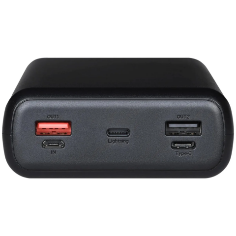 аккумулятор ёмкостью 30000 мАч, выход: 2xUSB, USB Type-C, Lightning, вход: microUSB, максимальный ток: 3 А, индикатор заряда