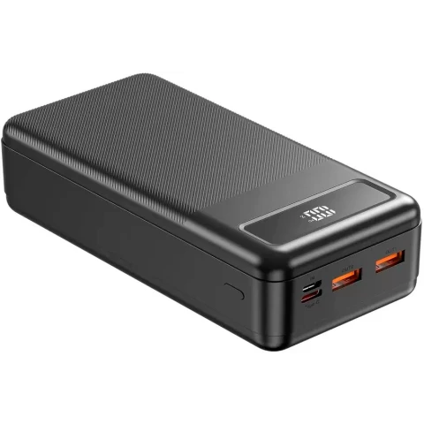 аккумулятор ёмкостью 30000 мАч, выход: 2xUSB, вход: USB Type-C, максимальный ток: 5 А, индикатор заряда
