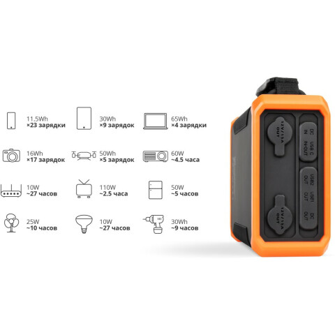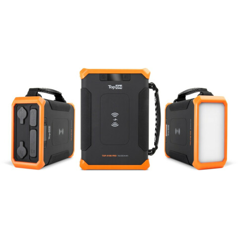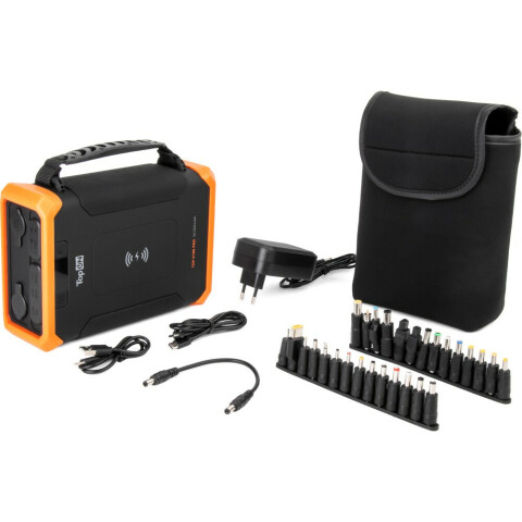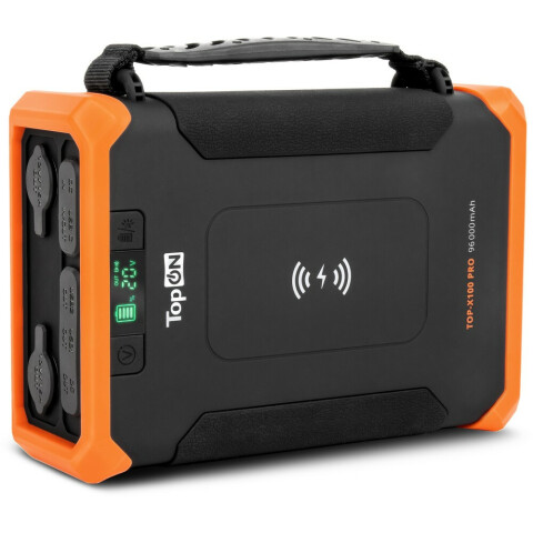 аккумулятор ёмкостью 96000 мАч, выход: 2xавтомобильная розетка, USB Type-C, 2xUSB, вход: DC, USB Type-C, максимальный ток: 3 А, быстрая зарядка, беспроводная зарядка, индикатор заряда