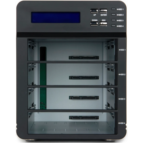 док-станция для накопителей форм-фактора 3.5", 4 слота, ёмкость накопителя до 4 ТБ, подключение к ПК через USB 3.0, eSATA