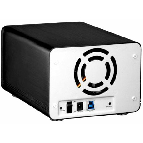 Внешний корпус для двух 3.5" HDD, USB 3.0/USB 2.0, активное охлаждение (70-мм вентилятор), 126x100x202 мм, алюминиевый корпус