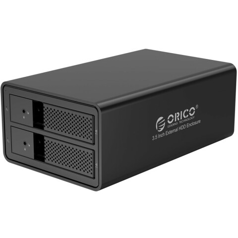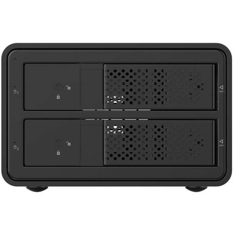 внешний корпус для накопителей форм-фактора 3.5", 2 слота, ёмкость накопителя до 32 ТБ, подключение к ПК через USB 3.0