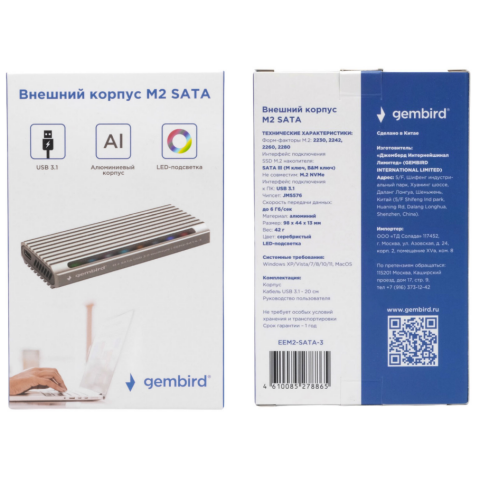 Внешний корпус для SSD M.2 Gembird EEM2-SATA-3 Silver