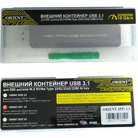Внешний корпус для SSD Orient 3551 U3