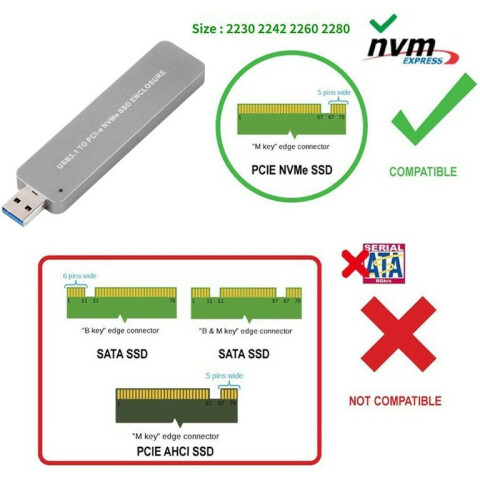 внешний корпус для накопителей форм-фактора M.2 NVMe, 1 слот, подключение к ПК через USB 3.1