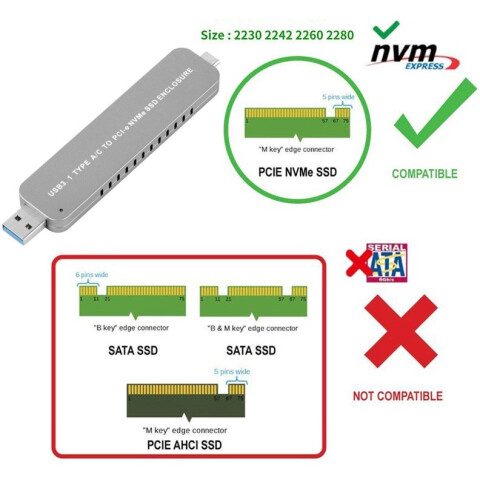 внешний корпус для накопителей форм-фактора M.2 NVMe, 1 слот, подключение к ПК через USB Type-C, USB 3.2