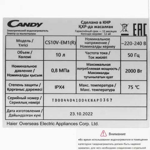 Водонагреватель Candy CS10V-EM1(R)