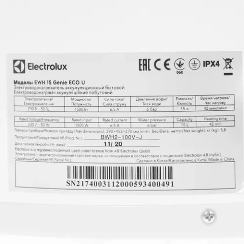 Водонагреватель Electrolux EWH 15 Genie ECO U_4