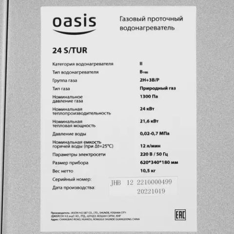 Водонагреватель Oasis 24 S/TUR_1