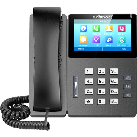 VoIP-телефон, 10 линий SIP, Wi-Fi, Bluetooth, цветной сенсорный экран, 4.3", 480x272, интерфейсы: WAN, Gigabit LAN, 2xUSB, поддержка PoE, громкая связь