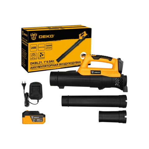 Бренд: DEKOручная воздуходувка электрический двигатель, скорость потока воздуха: 37 м/с, функции: обдув, работа от аккумулятора