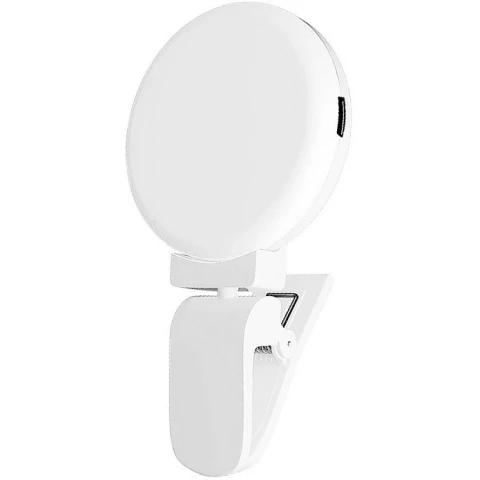 световое LED кольцо для селфи с креплением на смартфоне, 70x40x14мм, регулировка яркости: 3 режима, поворотный механизм 360°, встроенный аккумулятор, зарядка от USB