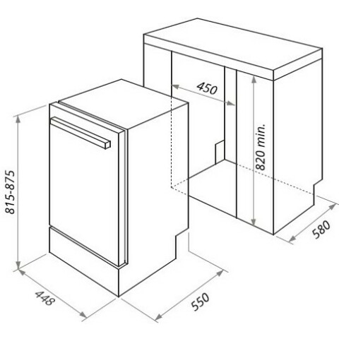 полностью встраиваемая посудомоечная машина, расход воды: 9 л, сенсорное управление, таймер отсрочки запуска, луч на полу, защита от протечек