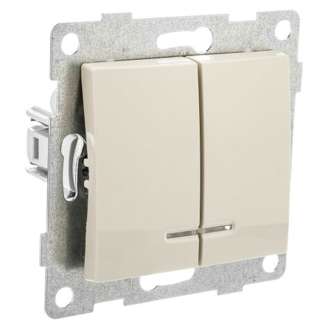 Бренд: GUSIвстраиваемый выключатель, нажимной, 2 клавиши, винтовое подключение, подсветка, IP20, бежевый