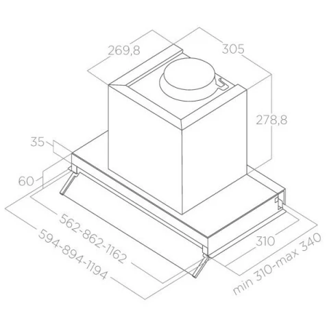 пристенная встраиваемая вытяжка, количество скоростей: 3, производительность: 1000 м3/ч, ширина встраивания: 120 см, электронное управление, периметриальное всасывание