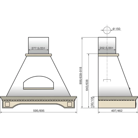 пристенная купольная вытяжка, количество скоростей: 3, производительность: 650 м3/ч, ширина встраивания: 90 см, механическое управление