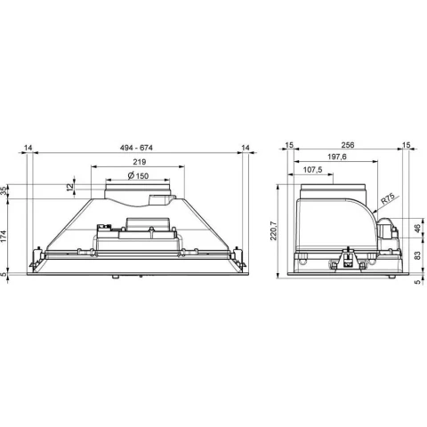 пристенная встраиваемая вытяжка, количество скоростей: 3, производительность: 450 м3/ч, ширина встраивания: 70 см, механическое управление, интенсивный режим