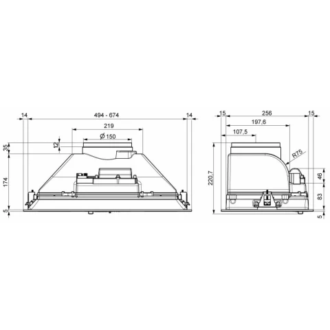 пристенная встраиваемая вытяжка, количество скоростей: 3, производительность: 450 м3/ч, ширина встраивания: 70 см, механическое управление