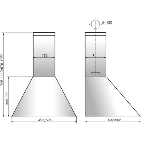 пристенная купольная вытяжка, количество скоростей: 3, производительность: 430 м3/ч, ширина встраивания: 60 см, механическое управление