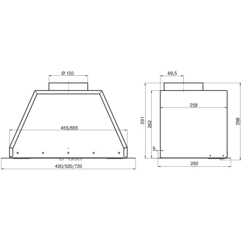 пристенная встраиваемая вытяжка, количество скоростей: 3, производительность: 650 м3/ч, ширина встраивания: 52 см, механическое управление