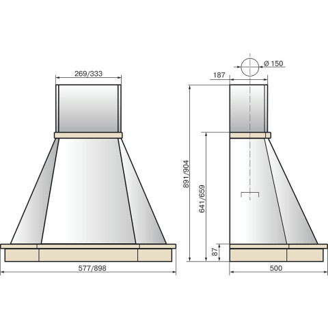 пристенная купольная вытяжка, количество скоростей: 3, производительность: 650 м3/ч, ширина встраивания: 90 см, механическое управление