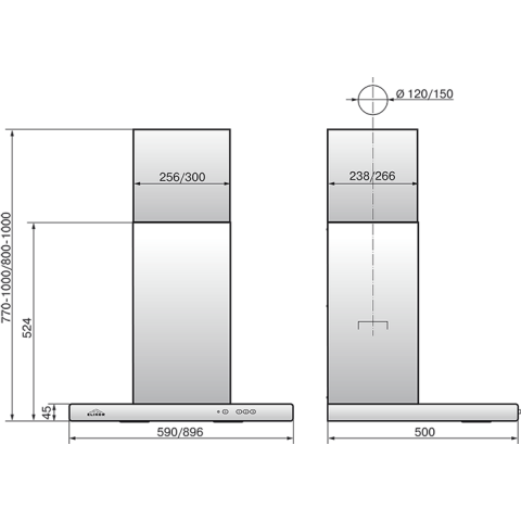 пристенная Т-образная вытяжка, количество скоростей: 3, производительность: 650 м3/ч, ширина встраивания: 90 см, механическое управление