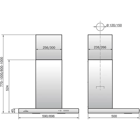 пристенная Т-образная вытяжка, количество скоростей: 3, производительность: 650 м3/ч, ширина встраивания: 90 см, механическое управление