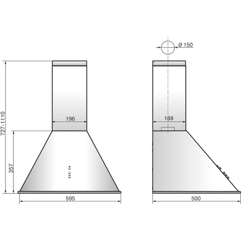 пристенная купольная вытяжка, количество скоростей: 3, производительность: 650 м3/ч, ширина встраивания: 60 см, механическое управление