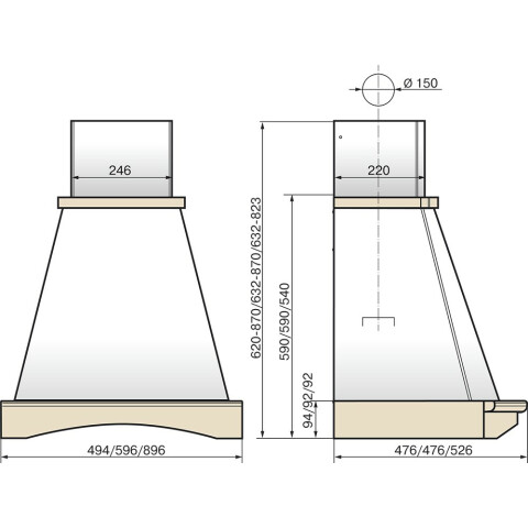 пристенная купольная вытяжка, количество скоростей: 3, производительность: 650 м3/ч, ширина встраивания: 60 см, механическое управление