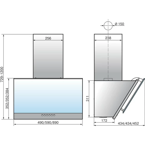 пристенная наклонная вытяжка, количество скоростей: 4, производительность: 700 м3/ч, ширина встраивания: 50 см, таймер