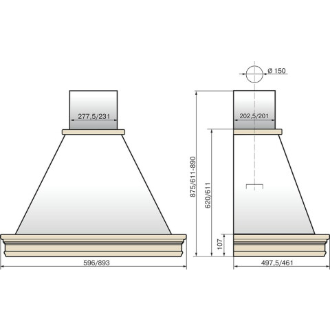 пристенная купольная вытяжка, количество скоростей: 3, производительность: 650 м3/ч, ширина встраивания: 90 см, механическое управление