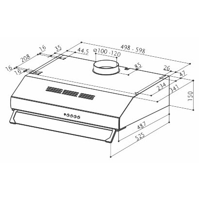 пристенная плоская вытяжка, количество скоростей: 3, производительность: 240 м3/ч, ширина встраивания: 60 см, механическое управление
