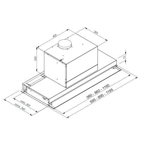 пристенная встраиваемая вытяжка, количество скоростей: 4, производительность: 455 м3/ч, ширина встраивания: 120 см, электронное управление, интенсивный режим