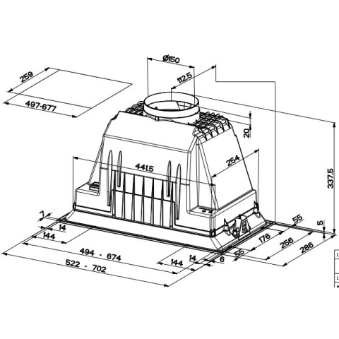 пристенная встраиваемая вытяжка, количество скоростей: 3, производительность: 580 м3/ч, ширина встраивания: 52 см, механическое управление